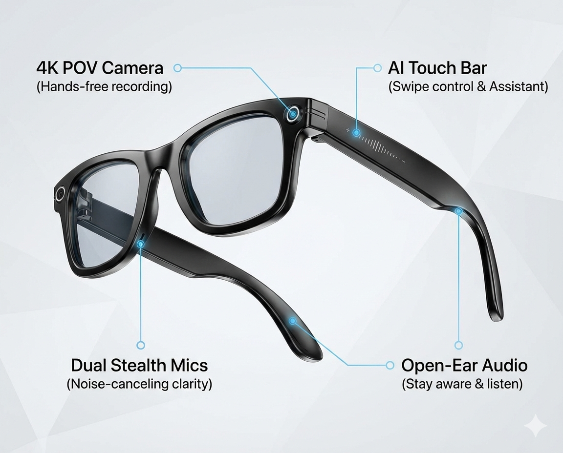 Absolutely not. You are in total control. The camera only records when you tap the frame or use a voice command. For transparency, a discreet LED indicator on the front lights up when recording is active, so you stay ethical and legal.
